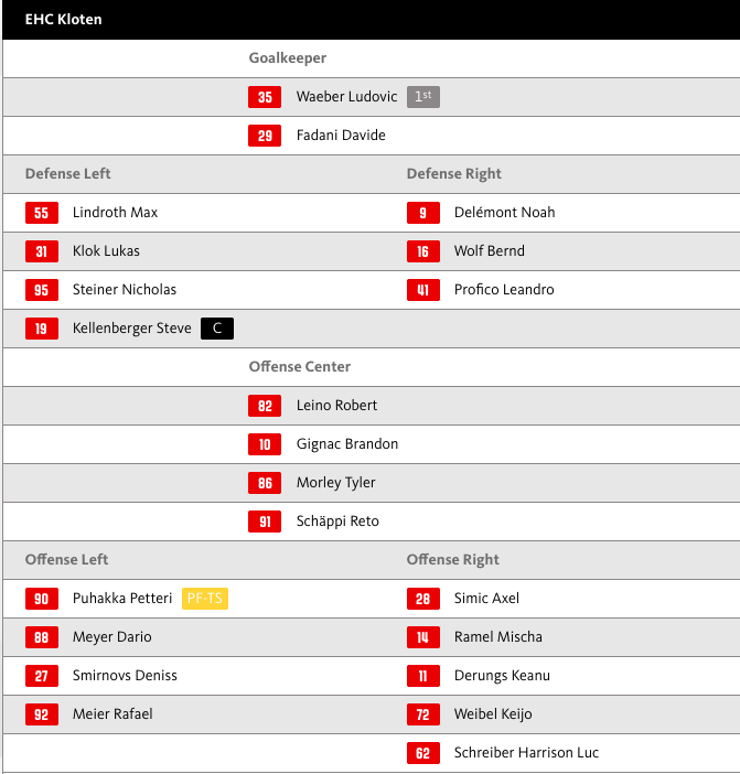 Aufstellung EHC Kloten