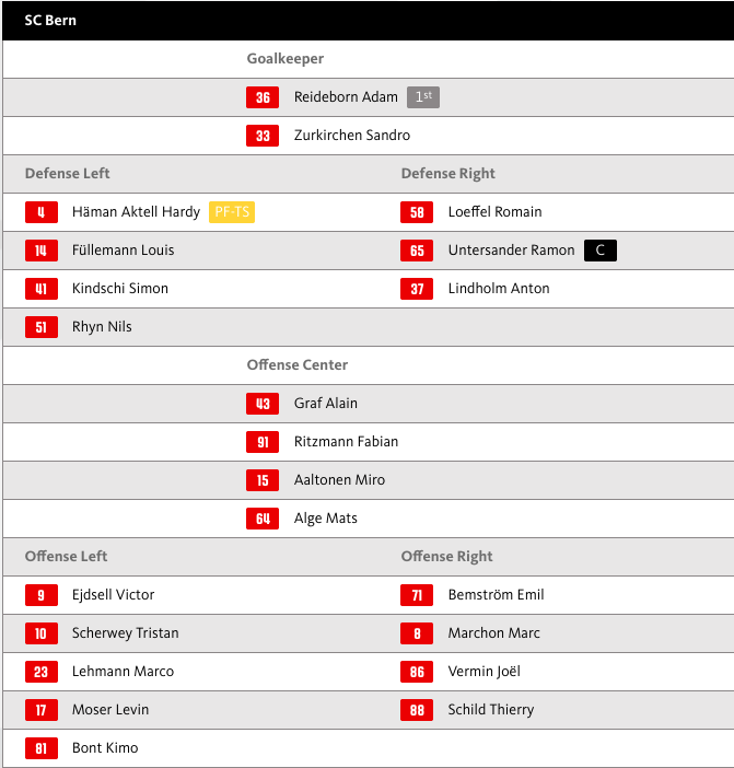 Aufstellung SC Bern