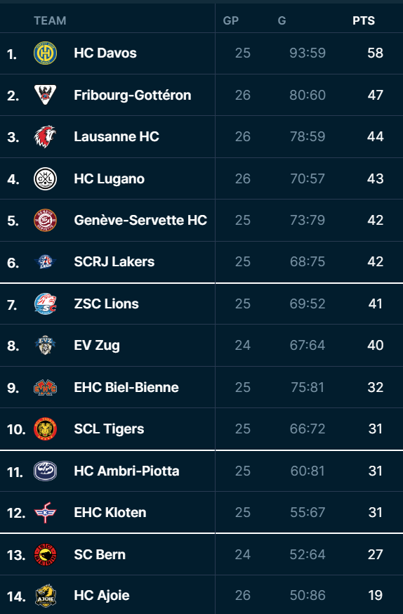 Die Lions fallen aufgrund der Niederlage aus den Top sechs und stehen mit weiterhin 41 Punkten nun auf Rang 7. Ajoie bleibt trotz der drei Punkte das Schlusslicht, der Rückstand auf den SC Bern schrumpft allerdings auf acht Punkte.