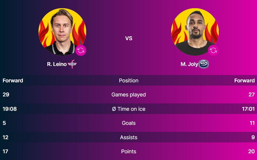 Beim Heimteam trägt Robert Leino dank 17 Punkten aus 29 Partien den Flammenhelm. Michael Joly ist bei Ambri mit 20 Punkten aus 27 Partien der fleissigste Scorer.