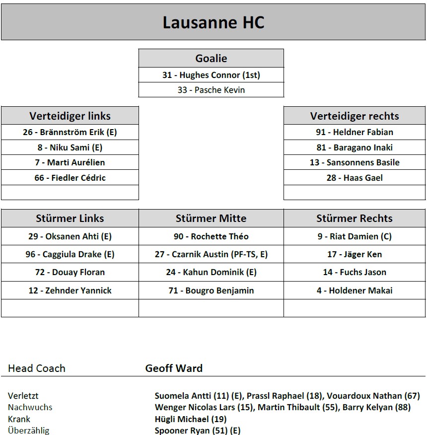Aufstellung Lausanne HC